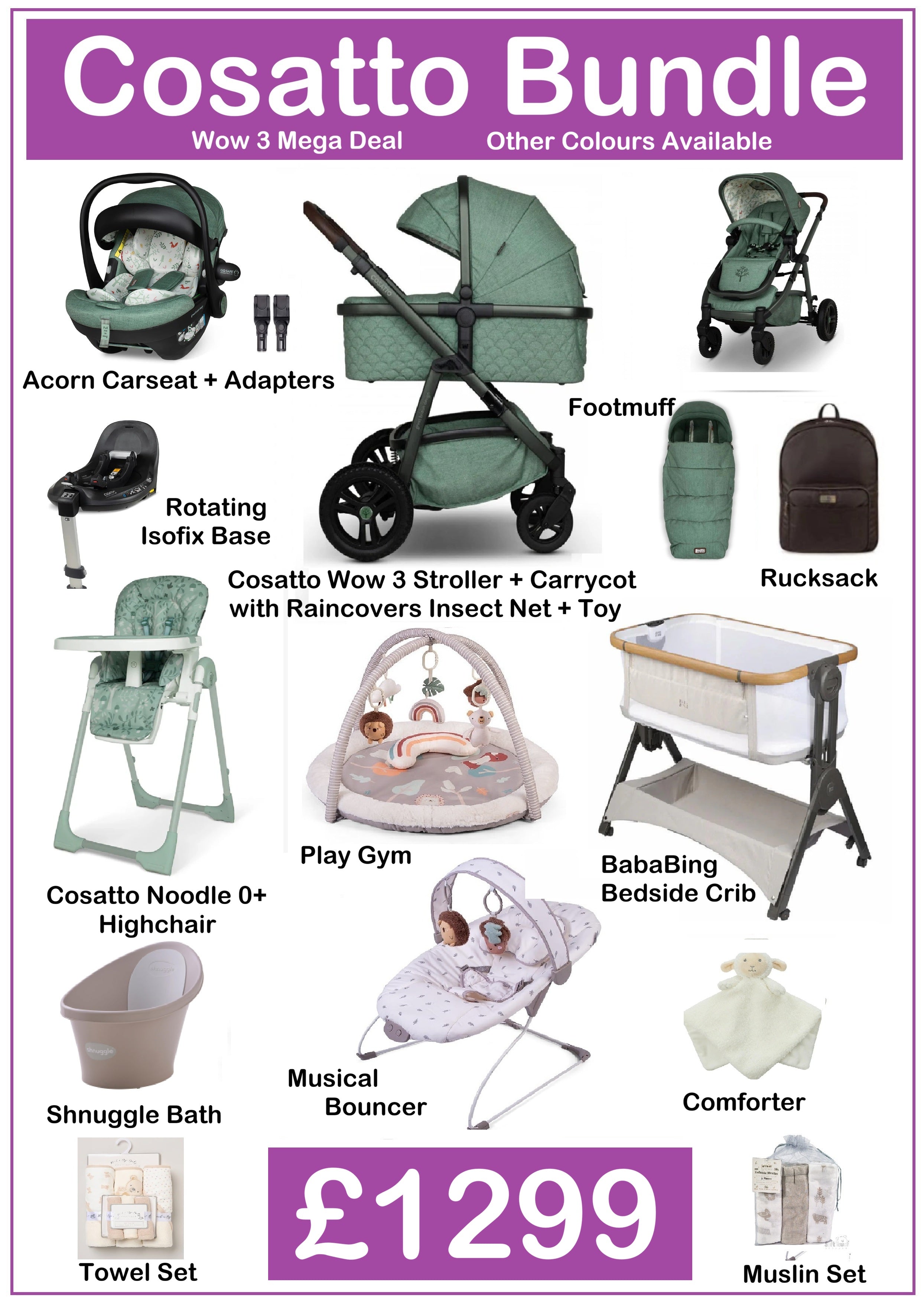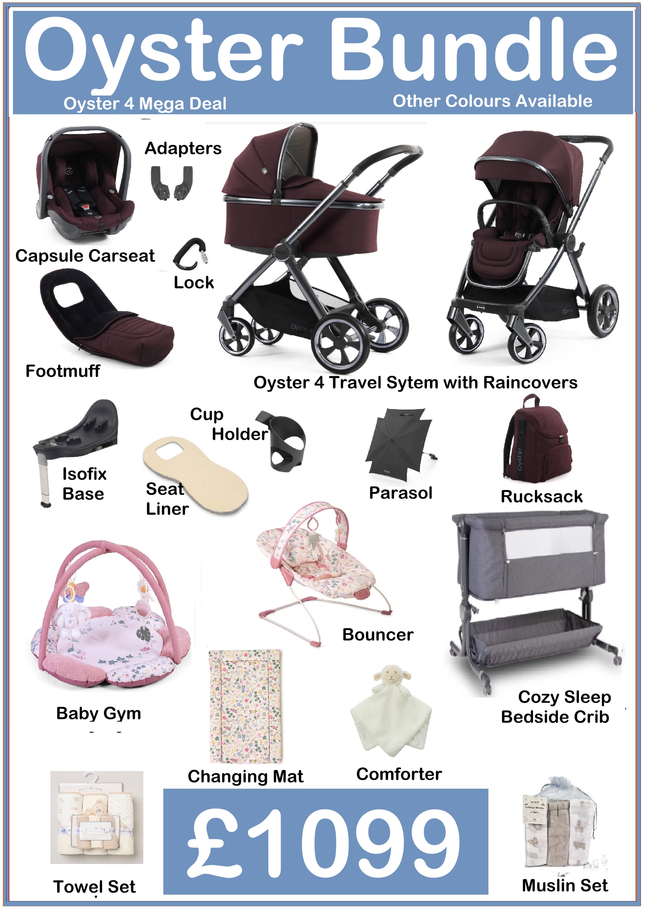 Our bundles are not available to buy online however we do post out if you get in touch so you can choose colours and designs etc or pop in.