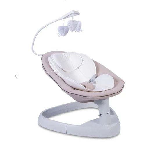 We all know that babies are happiest when held or rocked and the Sway Swing aims to help make your baby happy and content. Featuring calming side to side swaying action to replicate a soft rocking motion along the sounds of soothing music and lullabies. Fully supported in a deep padded soft seat with added head protection. Modern toy bar with cute soft hanging toys for baby’s attention.